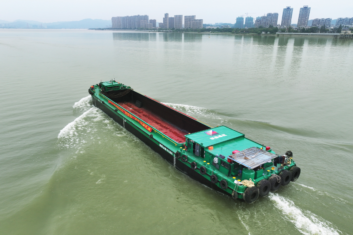 浙能集團自研“油改電”內河貨船試航成功。 邵子謙 攝