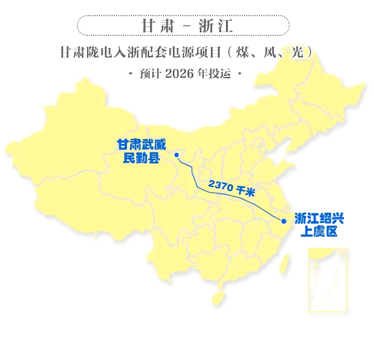 該工程動(dòng)態(tài)投資約353億元,線路全長約2370千米,輸送容量800萬千瓦,計(jì)劃于2026年投運(yùn),是國家電網(wǎng)公司貫徹落實(shí)黨的二十屆三中全會(huì)精神,推動(dòng)新型能源體系和新型電力系統(tǒng)建設(shè)的重要舉措。項(xiàng)目還在甘肅配套建設(shè)大型能源基地,由浙能集團(tuán)作為浙江方牽頭企業(yè)參與合作開發(fā),聚焦高質(zhì)量能源保供和高質(zhì)量綠色轉(zhuǎn)型兩大核心任務(wù),做強(qiáng)做優(yōu)做大能源“地瓜經(jīng)濟(jì)”,屆時(shí)每年將有約360億千瓦時(shí)的電量送往浙江。