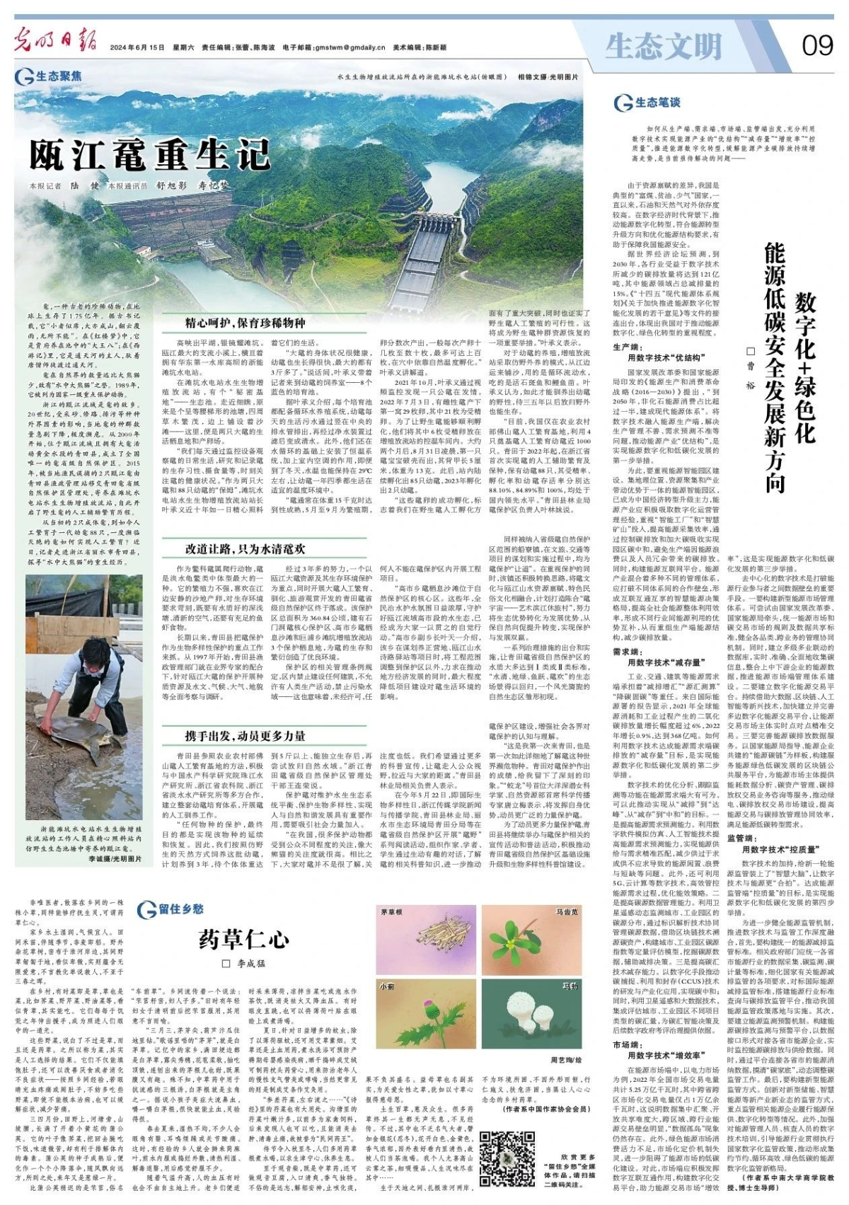 6月15日,光明日報報道《甌江黿重生記》。 祝益軍 提供