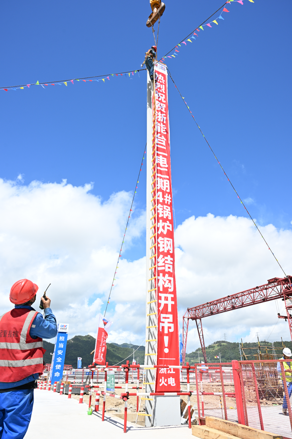 高質量發展看“浙”里 | 臺二電二期4號鍋爐首根鋼結構開吊