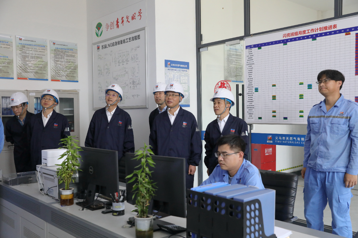 劉盛輝來到蘇溪LNG應急儲備站,詳細了解防火防爆、天然氣保供等工作情況,充分肯定義烏公司前階段工作成效,親切慰問在高溫天氣下堅守崗位的各位干部職工,叮囑大家要緊繃思想之弦、扛起應盡之責、守住安全底線,確保安全生產和能源保供平穩有序。