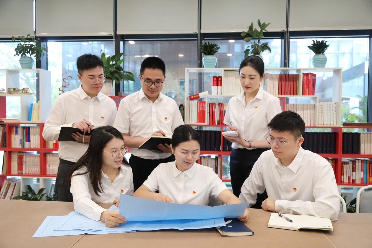 03-銅獎項目-浙江浙能科技環保集團股份有限公司的《“蓄式”而發,點“燃”高質量發展新引攀——高效RTO技術在能源化工工程的應用與示范》青創團隊成員們正在進行項目研討。 張琪 提供
