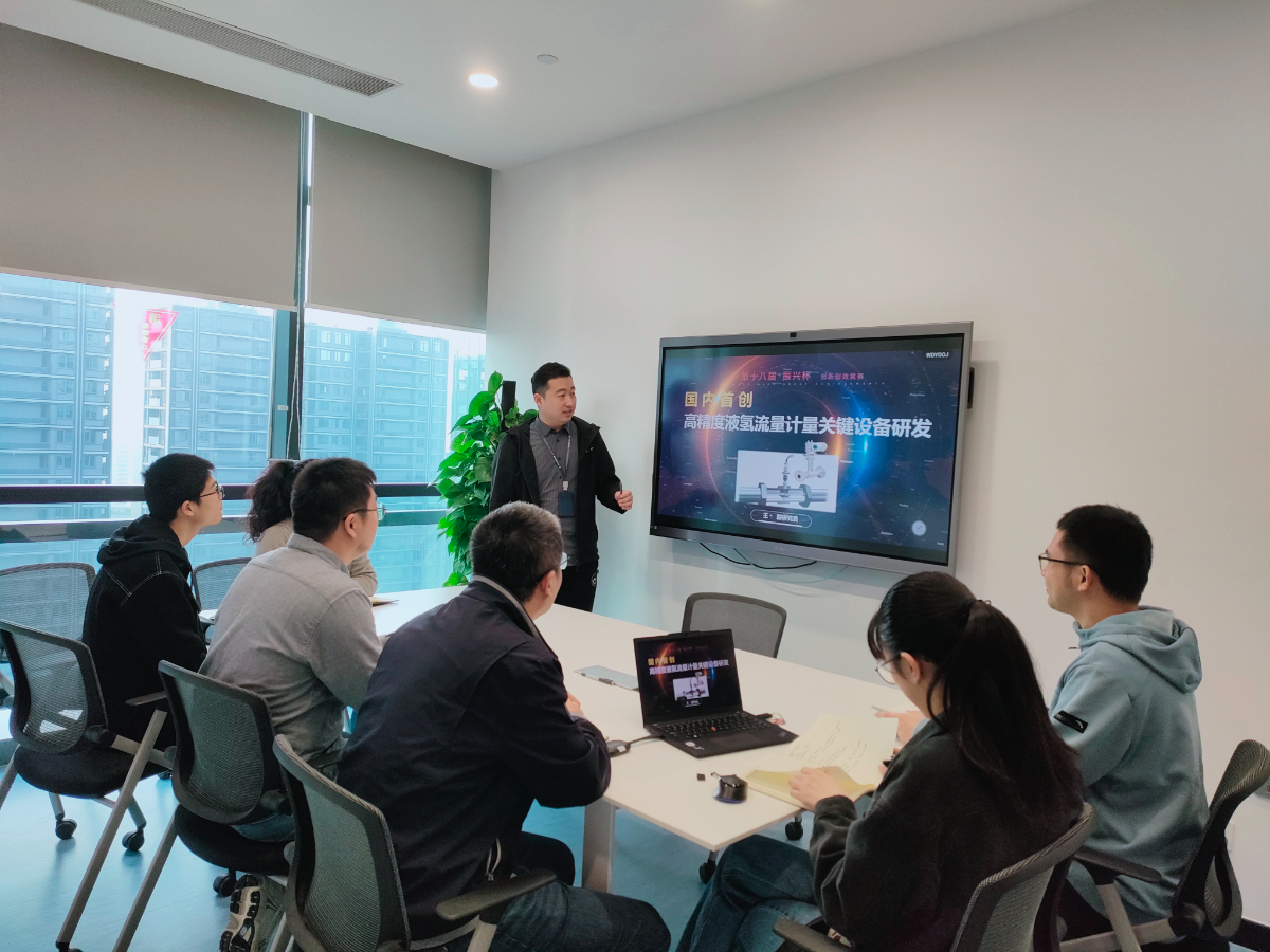 03-銅獎項目-白馬湖實驗室氫能(長興)有限公司的《高精度液氫流量計量關鍵設備研發》青創團隊成員們正在進行項目研討。 王軍 提供