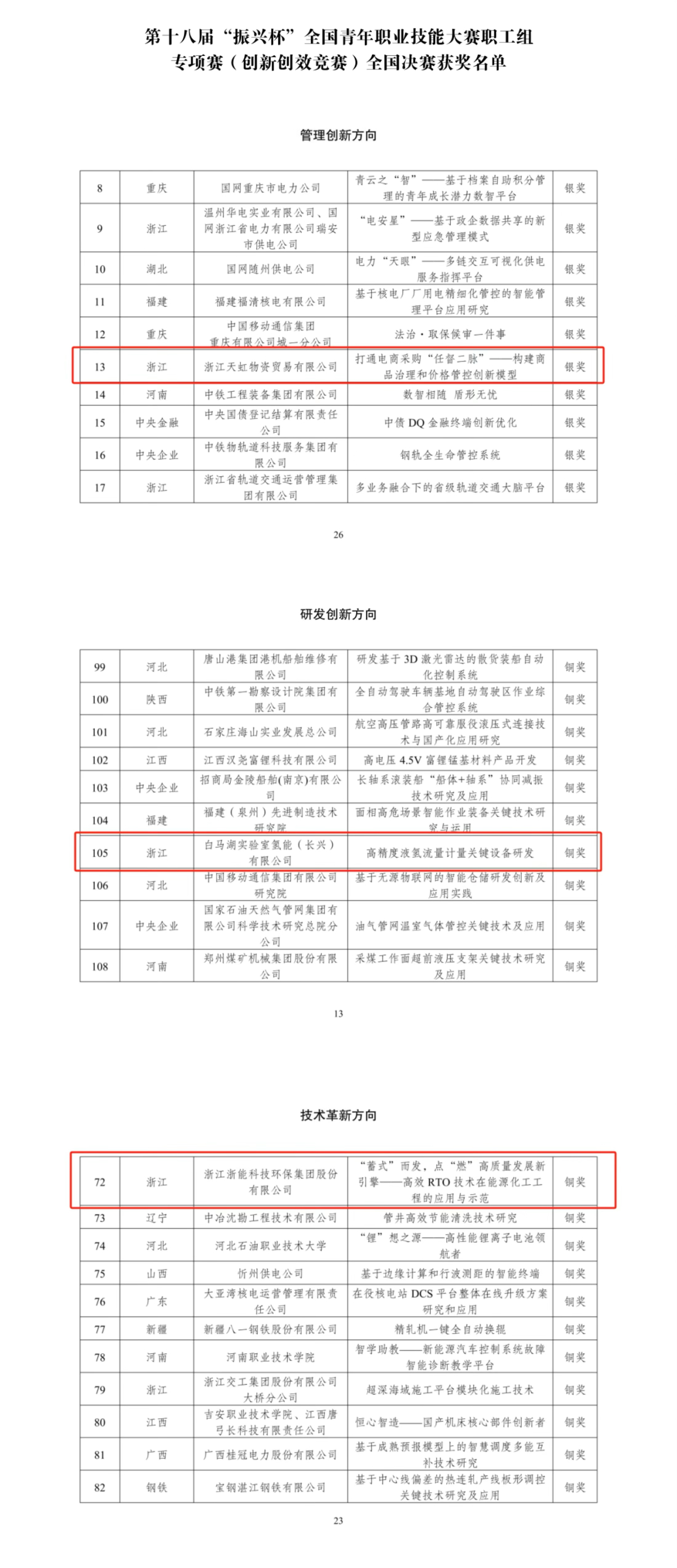 第十八屆“振興杯”全國青年職業技能大賽職工組專項賽(創新創效競賽)全國決賽獲獎名單。 “振興杯”賽事組委會 提供