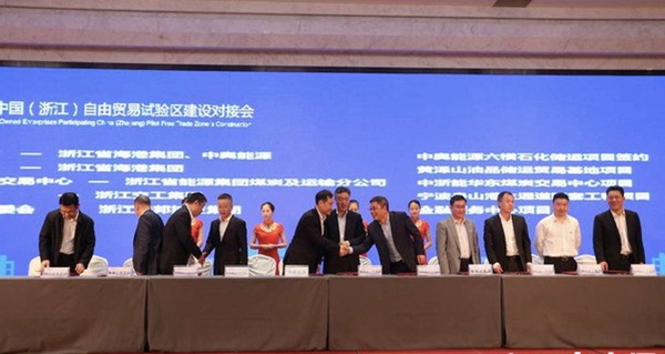4月21日,煤炭分公司與中國(浙江)大宗商品交易中心在自貿區對接會上簽署戰略投資協議。  何玉輝   攝
