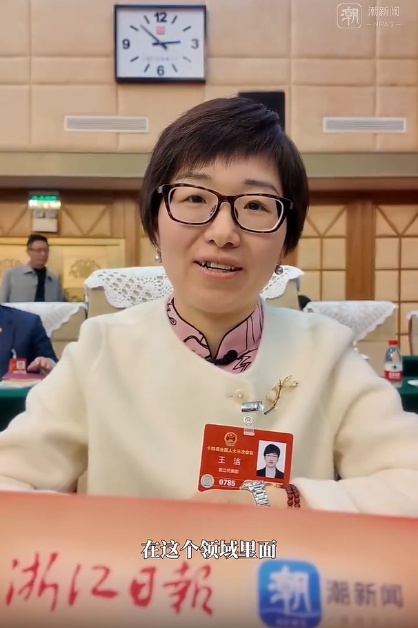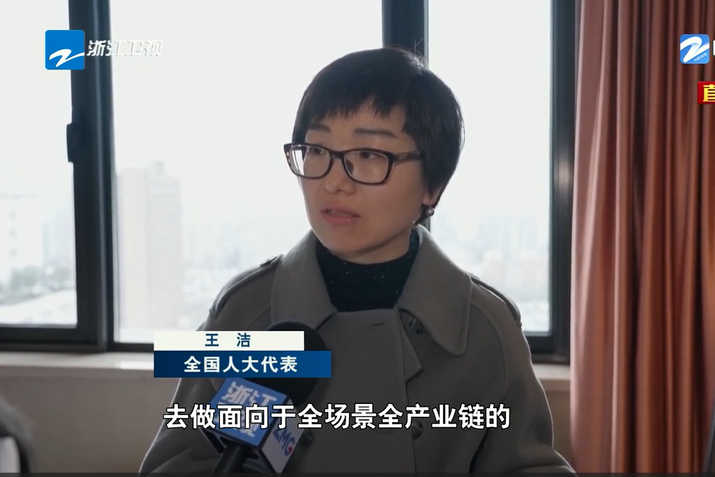 浙江衛視《浙江新聞聯播》報道《直通全國兩會 出席十四屆全國人大三次會議的浙江代表團抵京》,采訪王潔同志。 浙江衛視《浙江新聞聯播》 圖