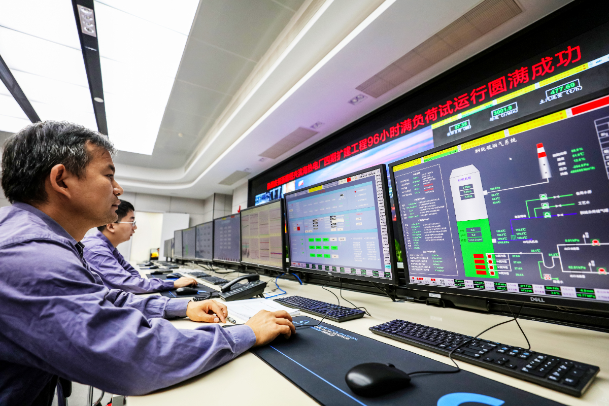 浙能濱海熱電運行操作員在項目9號機組168試運行期間認真監盤。 徐明敏 攝