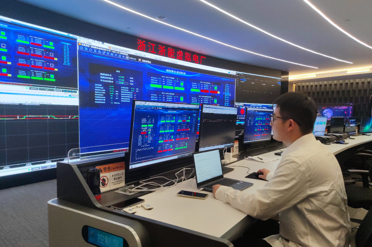 浙能虛擬電廠運行人員認真監盤。 周立娟 攝