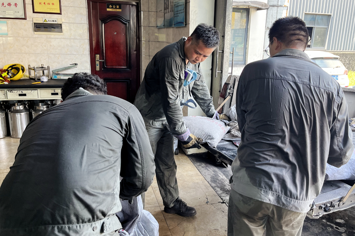 人工采樣后光是煤樣袋也要來回搬運(yùn)好幾輪。 葉其彬 提供