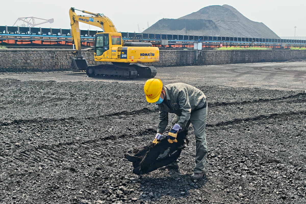 北方港口生產(chǎn)人員清理煤垛中雜質(zhì)。 徐寨豐 攝