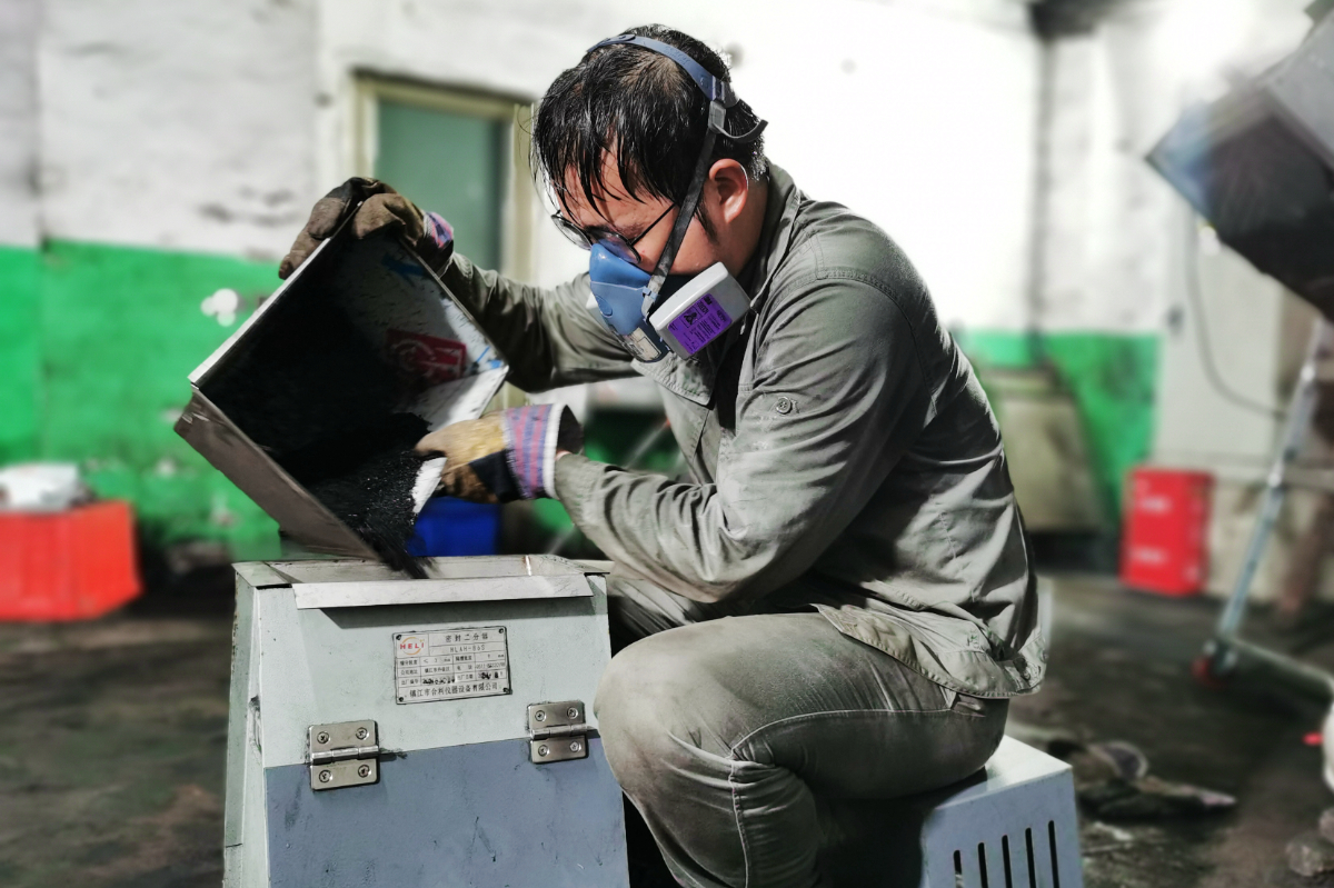 福建莆田港駐點檢測員工正在制備煤樣。 覃光和 攝