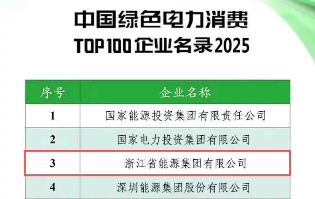 浙能集團(tuán)入選中國綠色電力(綠證)消費TOP100企業(yè)名錄