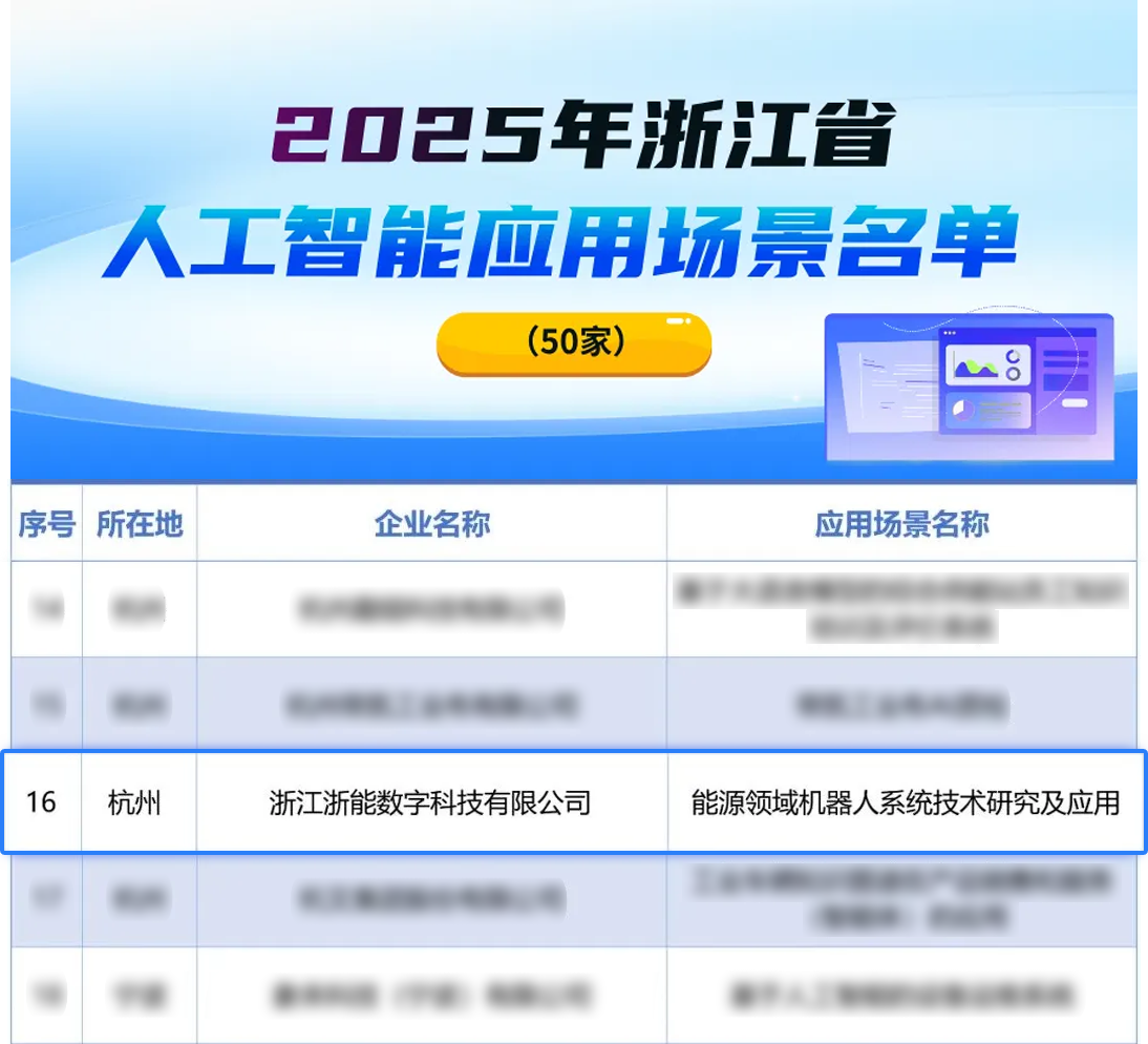 本網訊 近日,2025年浙江省人工智能應用場景名單公布,浙能數科“能源領域機器人系統技術研究及應用”成功入選。