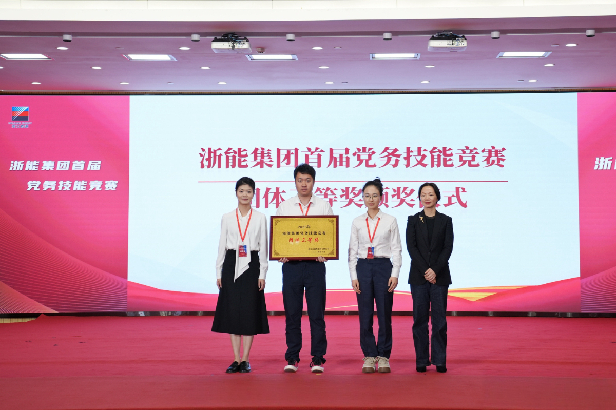 首屆黨務技能競賽全面展現了集團黨務工作者政治過硬、本領高強的復合型特質,生動呈現了黨建“軟實力”轉化為集團能源保供、綠色轉型“硬支撐”的具體路徑。經過激烈角逐,浙能科環隊獲團體一等獎,浙能資本隊獲團體二等獎,直屬企業一隊獲團體三等獎,張林晨獲個人一等獎,何琳、張樺楠獲個人二等獎,楊依杭、丁笛珂、毛超男獲個人三等獎,浙能科環榮獲優秀組織獎。
