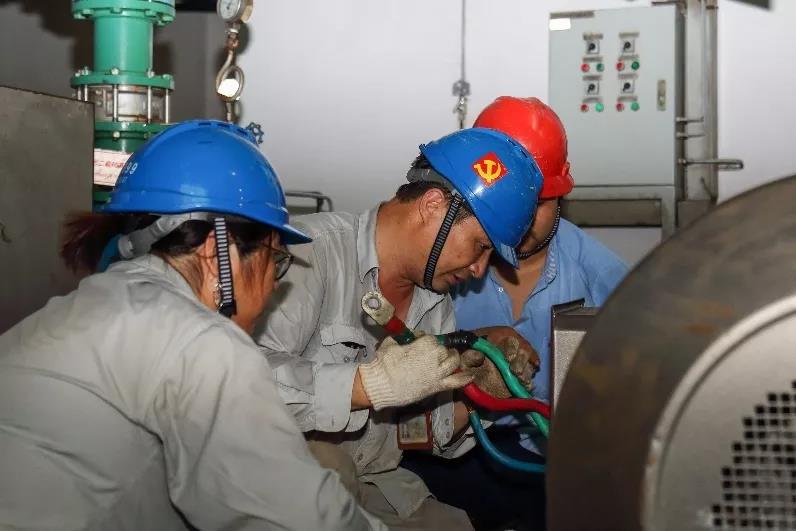 自超強臺風“利奇馬”10日凌晨正式登陸以來,樂清發電公司運行維護人員連夜奮戰,沖鋒在前,不懼急風暴雨緊急消缺,全力保障機組安全穩定運行。隨著臺風北上,樂清灣風雨漸息,因臺風天氣影響而調停的2號機組也于8月11日上午順利啟機,于17時35分迎來臺風過后的首次高負荷,實時負荷255萬千瓦,負荷率達96.6%。圖為樂電公司在臺風過后展開積極自救,該公司檢修人員在搶修受損高壓泵。(文/黃婉,圖/方國偉)