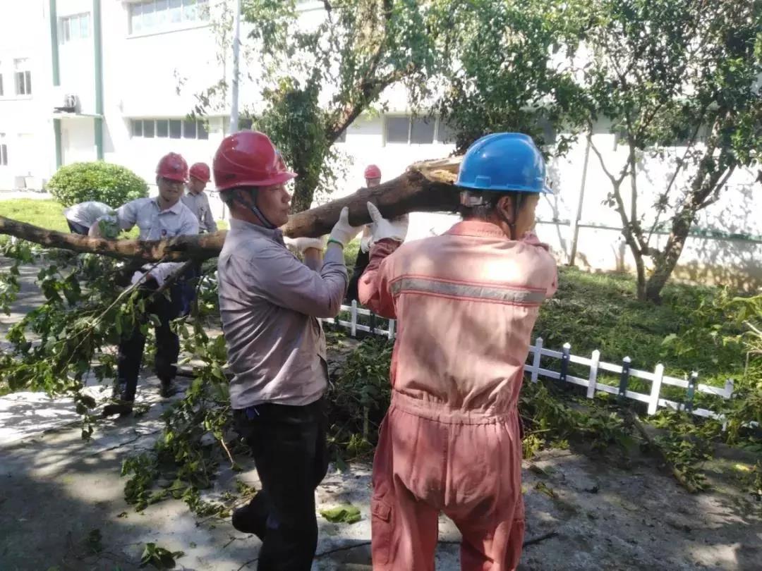 臺風過后,臺州發電廠的廠區道路兩旁隨處可見倒伏的大樹,折斷的樹干和飄落的枯枝殘葉,為開展災后自救工作帶來了障礙。8月11日,“利奇馬”登陸的第二天,來自臺電廠辦黨群、經營、生產、公司、行政黨支部的76名機關科室的黨員、干部放棄周末休假時間,主動投入到災后恢復道路及廠區文明衛生清理工作中。13日,臺電再次派出第二批救援人員向臨海集結,經過一天一夜的努力,排水近12萬立方米,圓滿完成大洋小區地下停車場搶險任務,20時30分,救援隊迅速轉戰臺州中學校區地下室!(文:汪舜檀,圖:朱新場)
