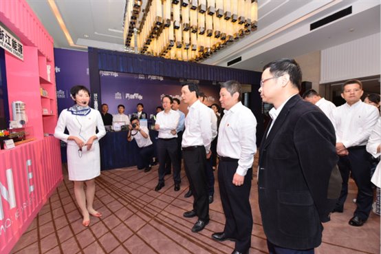 陳月亮、朱林森、倪震等領導參觀浙能展臺。程哲陽 攝
