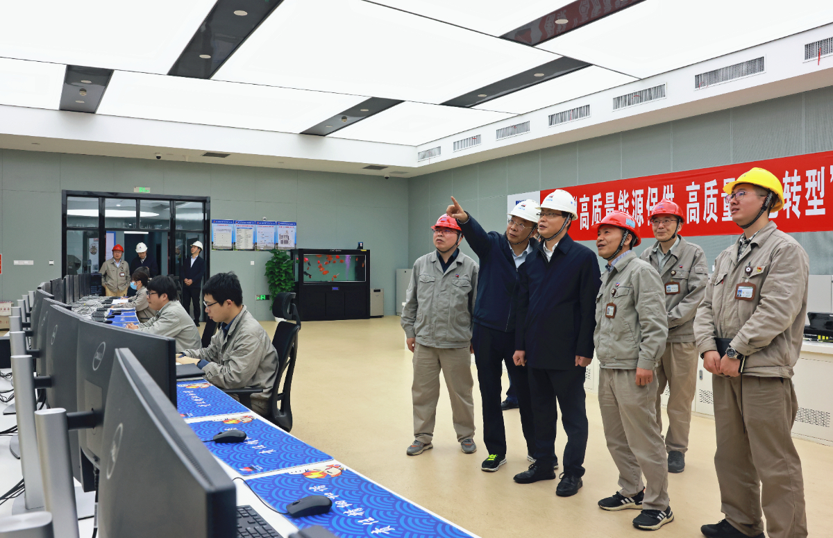 劉盛輝一行到樂電三期集控室了解機組運行等情況。樓瑋瑤 攝