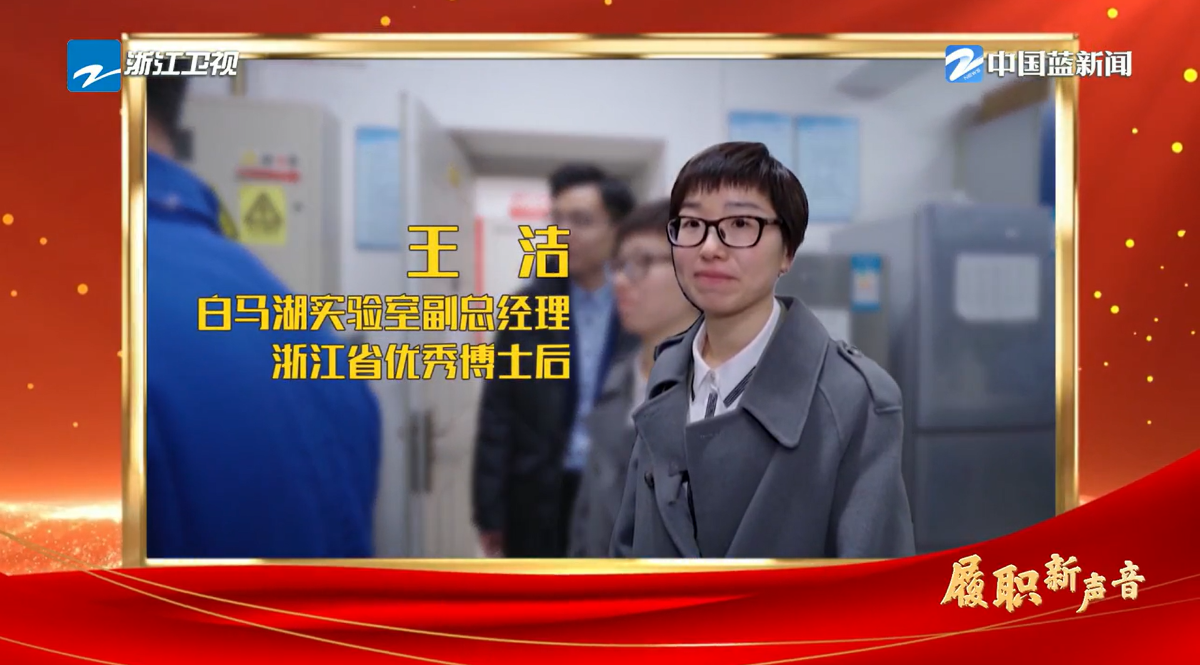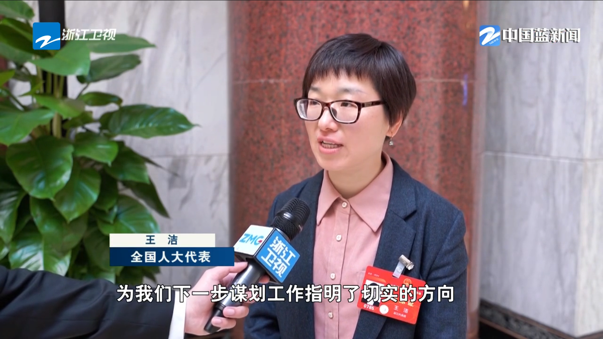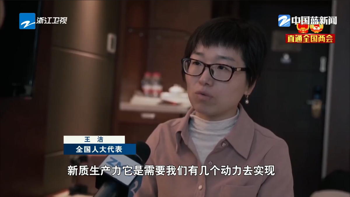 浙江衛(wèi)視《浙江新聞聯播》報道《直通全國兩會·履職新聲音 王潔:讓科研與生產力雙向奔赴》。 浙江衛(wèi)視 圖